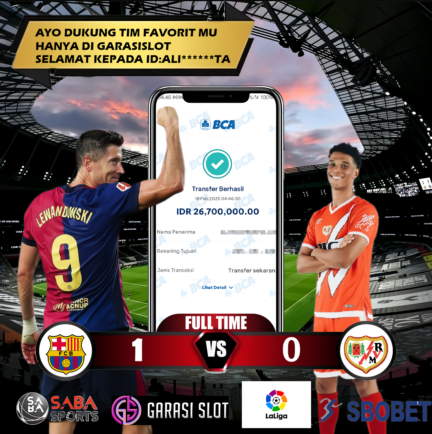 Selamat Kepada Id :ID: ALI******TA Atas Withdraw Rp. 26.700.000 Juta Hari ini. Ditunggu Withdraw Selanjutnya dan ajak juga teman temannya bergabung di GARASISLOT