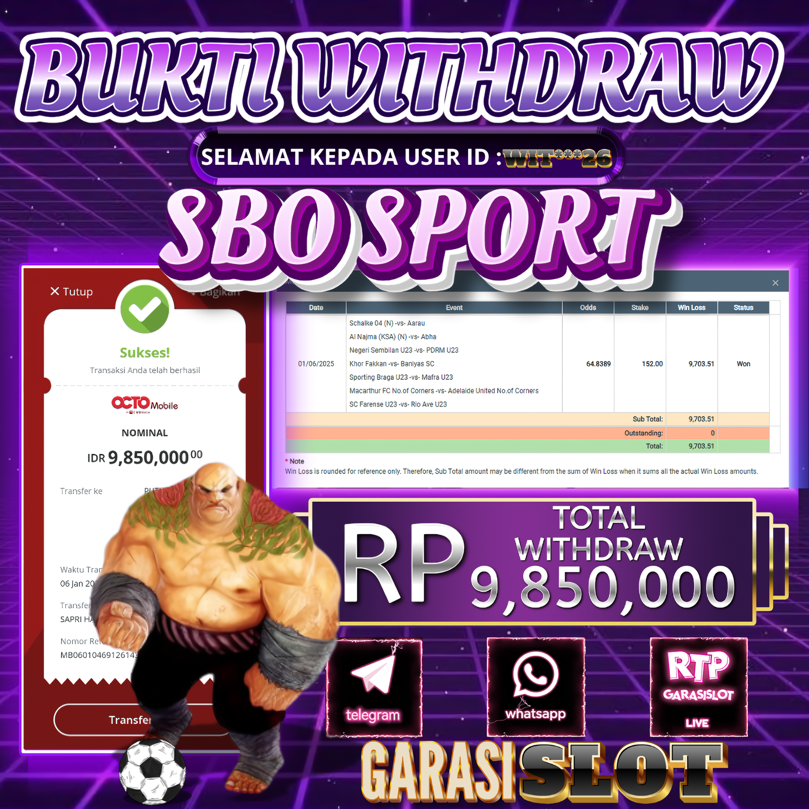 Selamat Kepada Id : WIT***26 Atas Withdraw Rp. 9.850.000 Juta Hari ini. Ditunggu Withdraw Selanjutnya dan ajak juga teman temannya bergabung di GARASISLOT