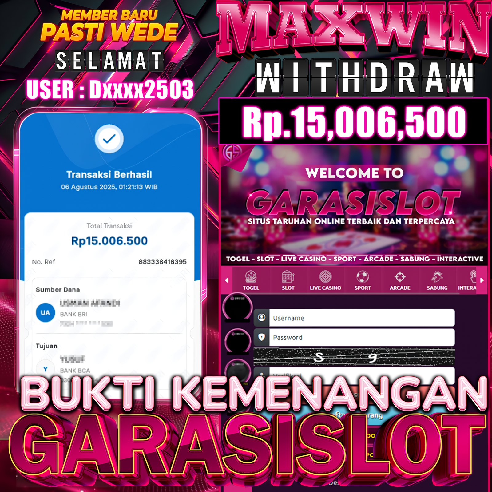 Selamat Kepada Id : dxxxx2503 Atas Withdraw Rp. 15.006.500 Juta Hari ini. Ditunggu Withdraw Selanjutnya dan ajak juga teman temannya bergabung diĀ GARASISLOT