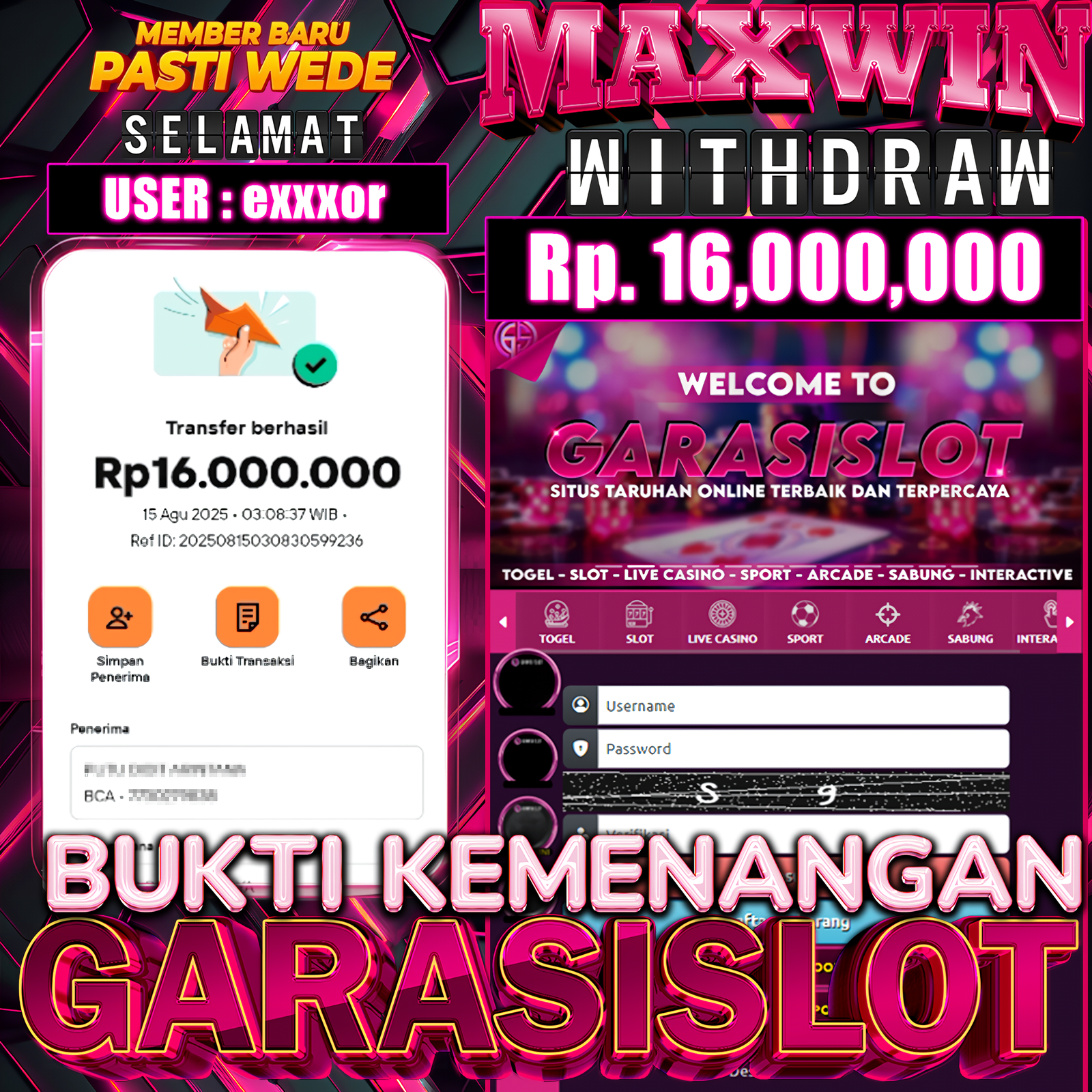 Selamat Kepada Id : exxxrAtas Withdraw Rp. 16,000.000 Juta Hari ini. Ditunggu Withdraw Selanjutnya dan ajak juga teman temannya bergabung diĀ GARASISLOT