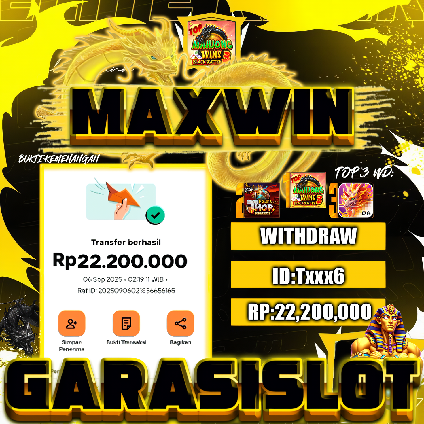 β€œAwalnya iseng, eh malah nyangkut Black Scatter 5x! Sekarang tiap malam nyari durian runtuh di Garasislot.” ID: Txxx6