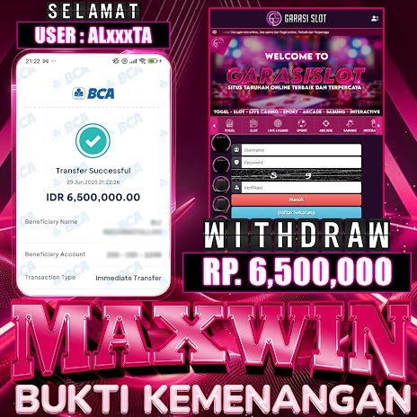 Selamat Kepada ID : kaxxx11 Atas Withdraw Rp. 7.000,000 Juta Hari ini. Ditunggu Withdraw Selanjutnya dan ajak juga teman temannya bergabung di GARASISLOT Rumah ny