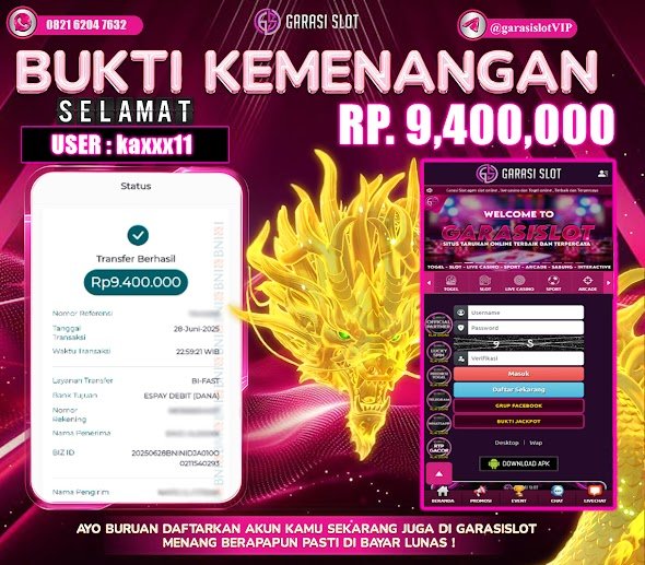 Selamat Kepada ID : kaxxx11 Atas Withdraw Rp. 9.400,000 Juta Hari ini. Ditunggu Withdraw Selanjutnya dan ajak juga teman temannya bergabung di GARASISLOT Rumah ny