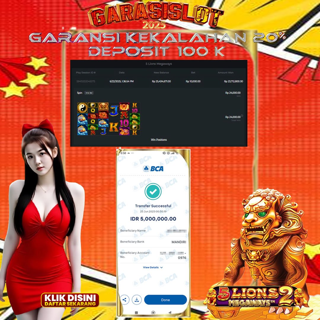Selamat kepada Username :bhue***a1 karena sudah berhasil memenangkan R 5.000.000 dari SLOT jepe bermain di situs gacor5 lion megaways dan saldo withdraw sudah berhasil dikirimkan tanpa hambatan. Setelah mengisi formulir withdraw, tim layanan GARASISLOT langsung mengirimkannya ke rekening terdaftar.