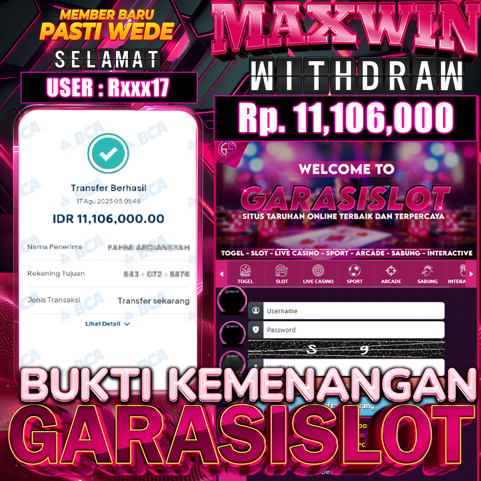 Selamat Kepada Id : RXXX17 Atas Withdraw Rp. 11.106.000 Juta Hari ini. Ditunggu Withdraw Selanjutnya dan ajak juga teman temannya bergabung diĀ GARASISLOT