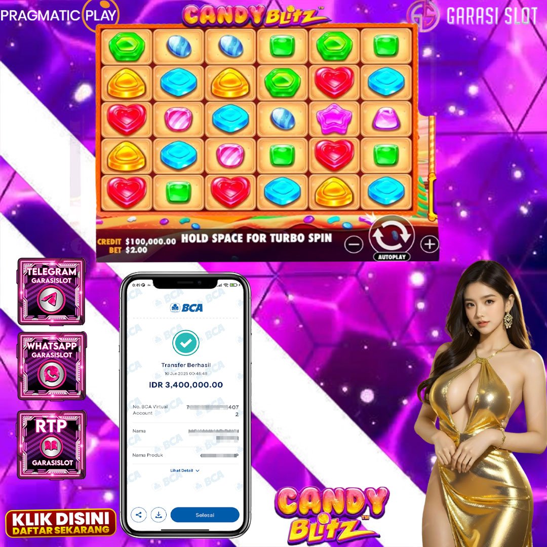 Mau mendapatkan kemenangan nyata dan pencairan cepat?, tentu saja GARASISLOT adalah pilihan tepat untuk memperoleh layanan eksklusif supaya lebih puas dalam bermain. Segera daftarkan satu akun login GARASISLOT supaya bisa mendapatkan kemenangan SLOT CANDY BLITZ PRAMATIC PLAY terbesar sepanjang berkarir.