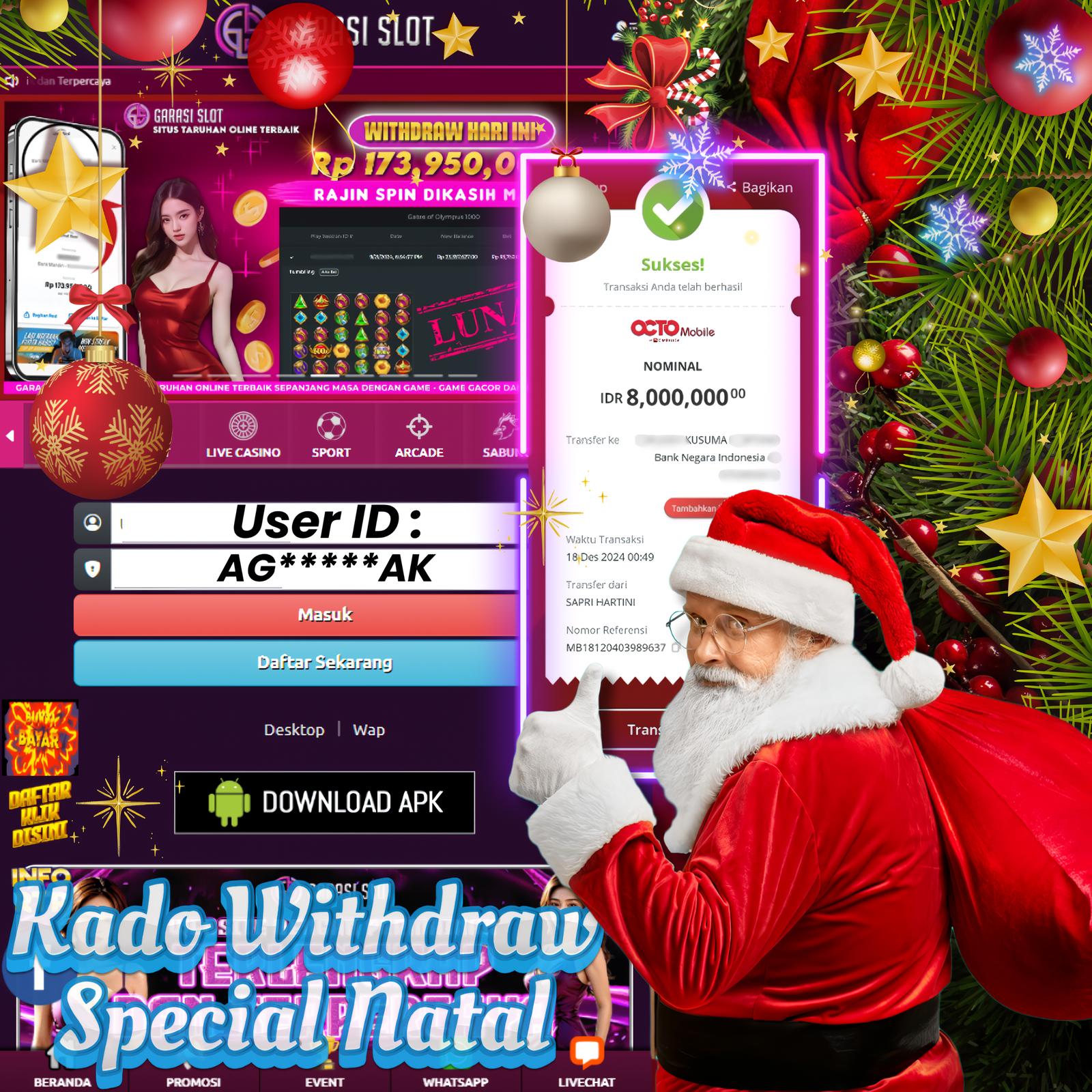 Selamat Kepada Id : AG*****AK Atas Withdraw Rp. 8.000.000 Juta Hari ini. Ditunggu Withdraw Selanjutnya dan ajak juga teman temannya bergabung di GARASISLOT GARASISLOT adalah