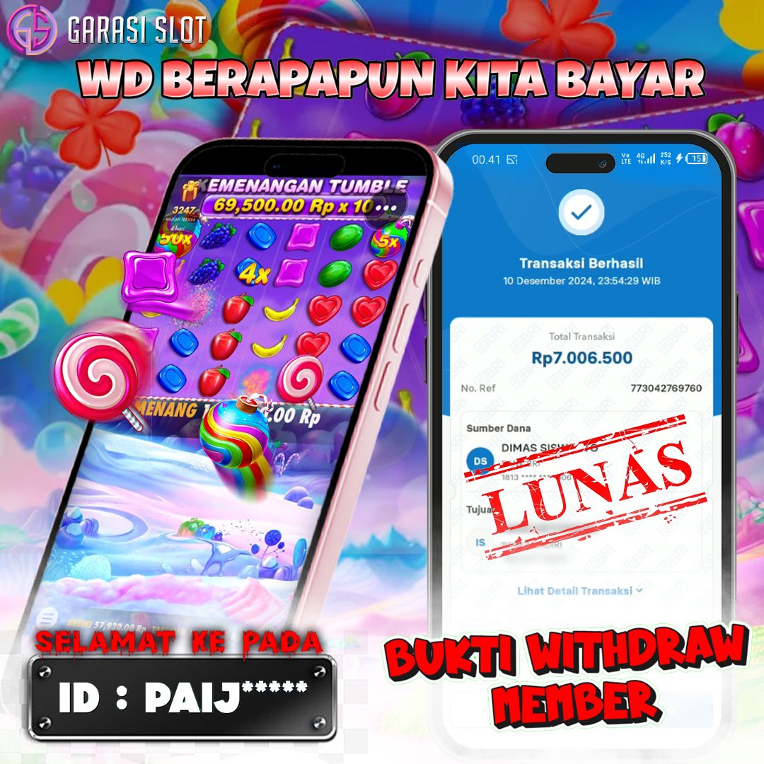 Selamat Kepada Id : PAIJ***** Atas Withdraw Rp. 7.006.500 Juta Hari ini. Ditunggu Withdraw Selanjutnya dan ajak juga teman temannya bergabung di GARASISLOT GARASISLOT adalah