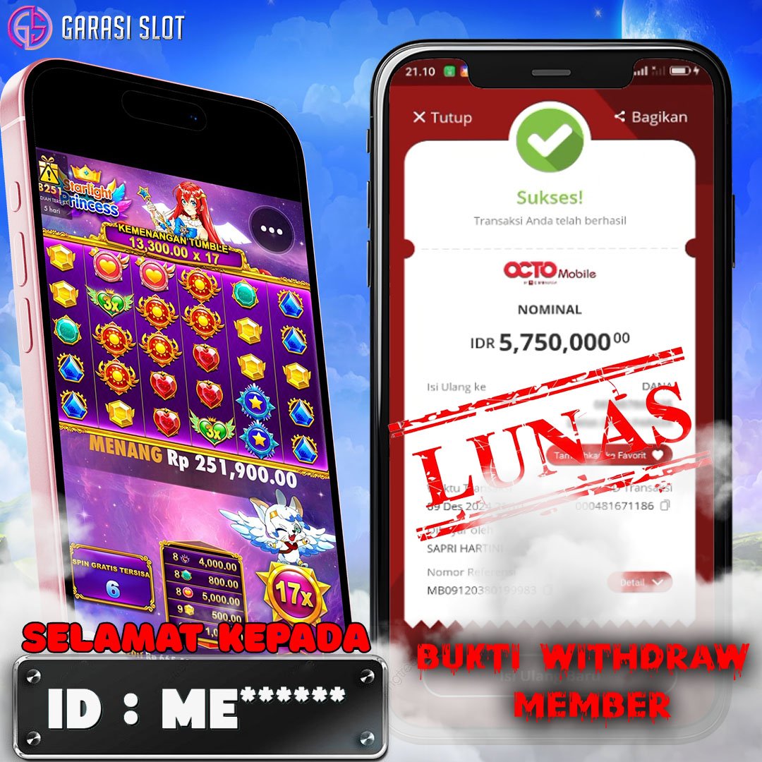 Selamat Kepada Id : ME****** Atas Withdraw Rp. 5.750.000 Juta Hari ini. Ditunggu Withdraw Selanjutnya dan ajak juga teman temannya bergabung di GARASISLOT GARASISLOT adalah